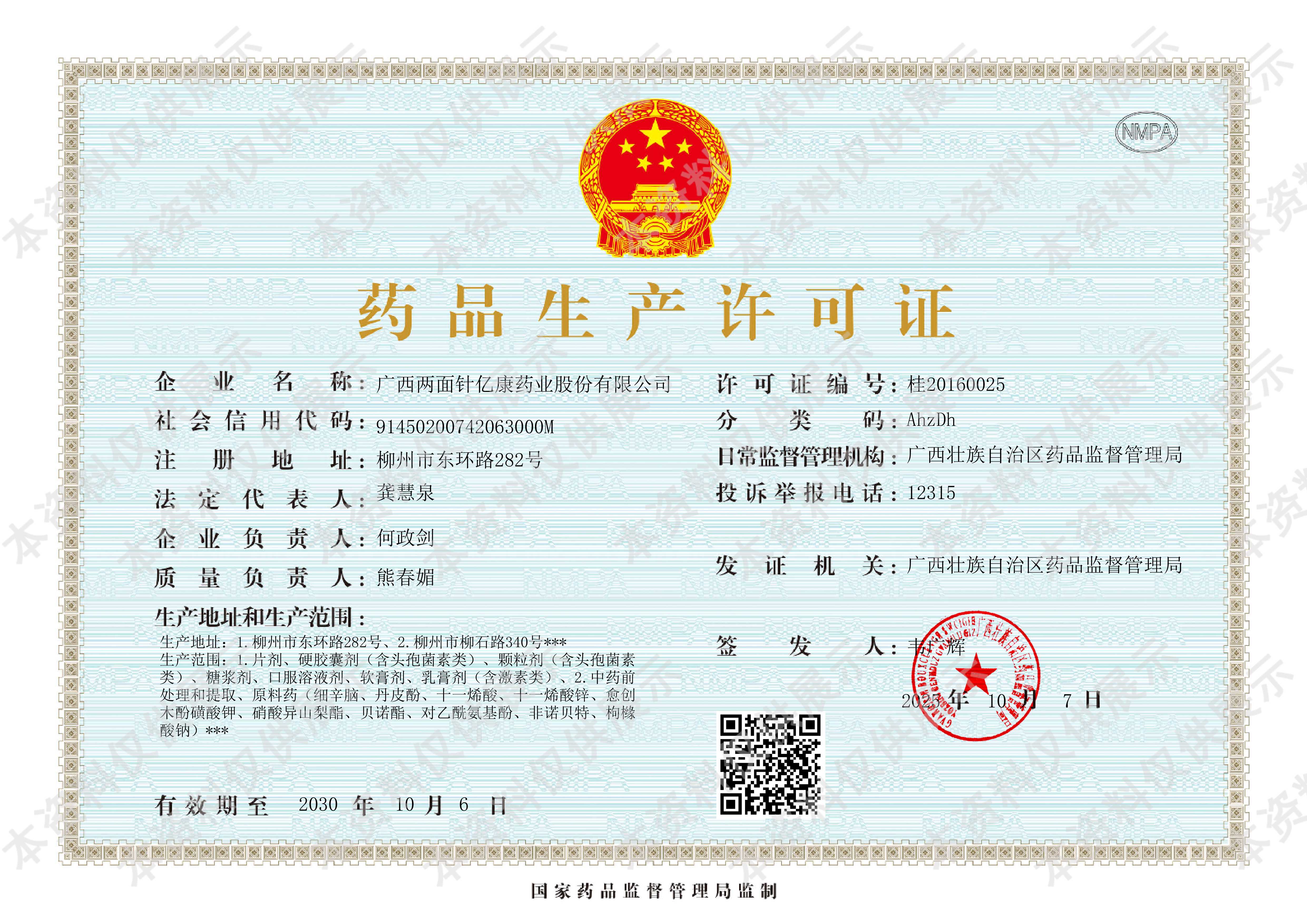 广西两面针亿康药业股份有限公司,位于广西工业重镇,西南交通枢纽柳州市。公司前身为柳州市制药厂,1958年建厂,于2002年由柳州两面针股份有限公司(上市公司,股票代码600249)投资控股,改制为广西亿康药业股份有限公司,具有60年制药历史。2018年12月1日,因生产经营需要,正式更名为广西两面针亿康药业股份有限公司。